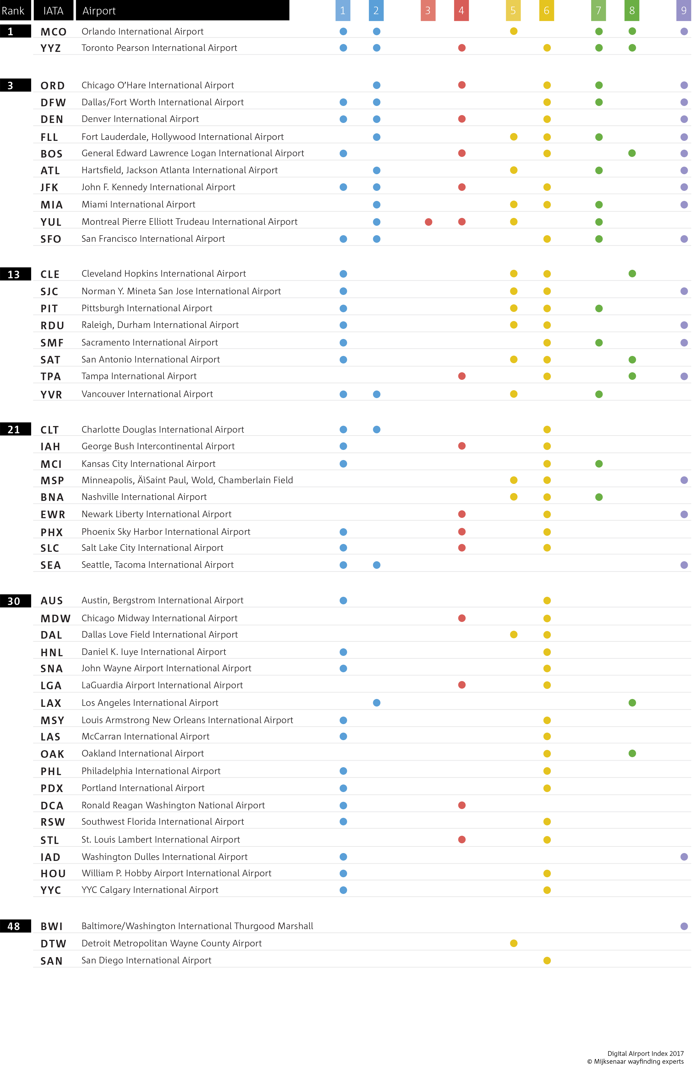 The data for this index was gathered in august of 2017, amongst the biggest 50 airports in annual pax in the IATA research region North America in 2016. A more detailed report about a region or specific airport can be requested using form below.